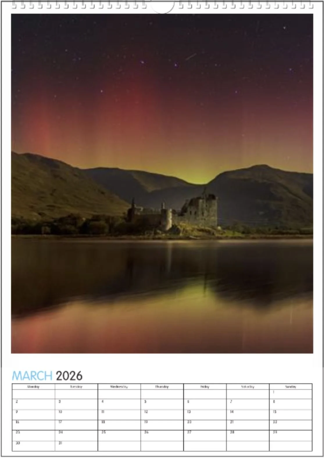 The calendar itself is A3 in size - 297mm (11.7 inches) X 420mm (16.5 inches) with a 250gsm Silk Cover and 170gsm Silk Inner Pages